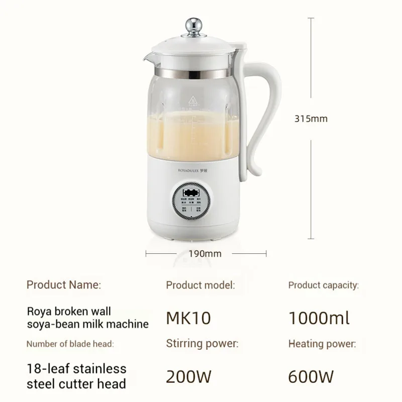 18 blade household soybean milk machine heating full-automatic small low-noise 1000ml large capacity multi-function blender 220V