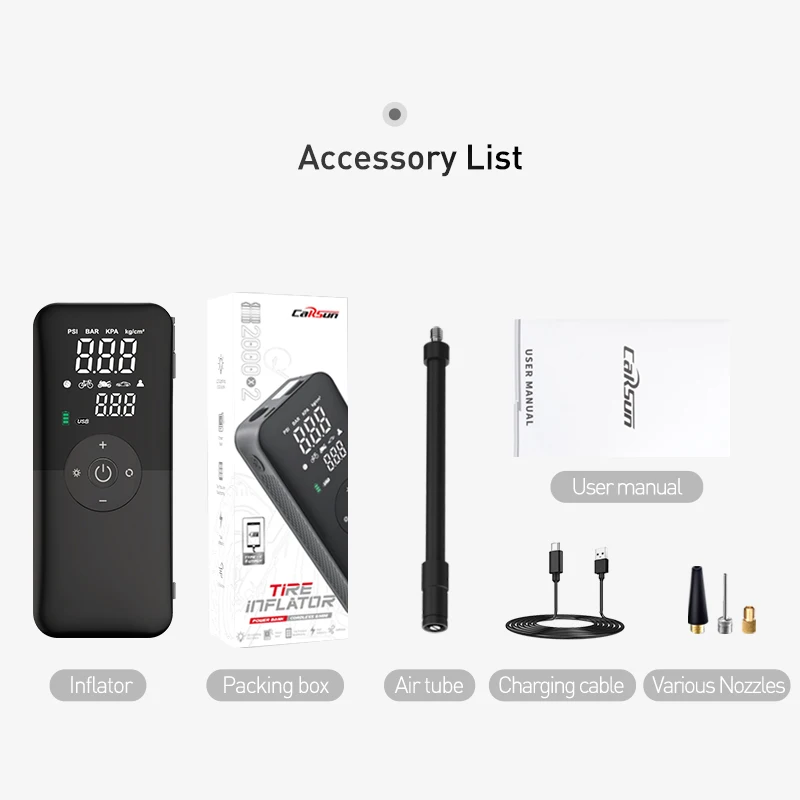 CARSUN Rechargeable Air Pump Tire Inflator Portable Compressor Digital Cordless Car Tyre Inflator For Bicycle Balls