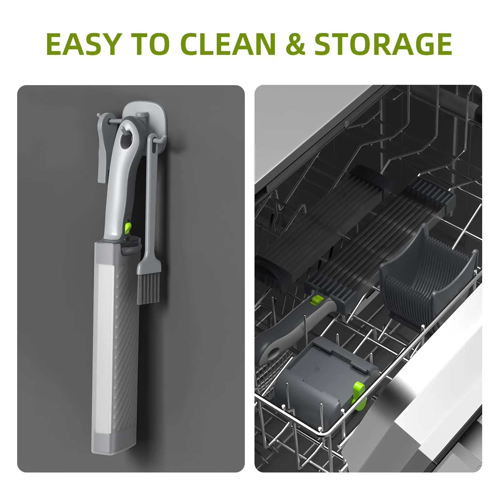 Easy to clean and store: Our meat slicer set comes with a cleaning brush for easy maintenance. Its compact size and wall-mountable design saves valuable kitchen space