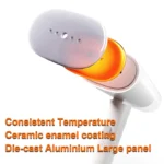 The ceramic-coated aluminium panel maintains a consistent temperature, smoothly removes wrinkles without damaging fabrics.